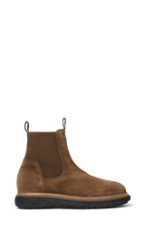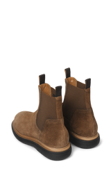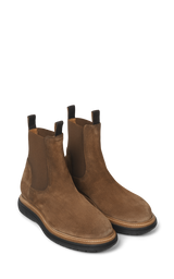 Cool cognac ruskindsstøvler. De har elastik på siderne og cool sort gummisål der har et mere strømlignet udtryk.