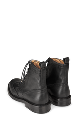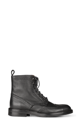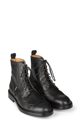 Cool snørestøvler i sort læder med golf-mønster både på snuden og op af siderne. Støvlerne har fem snørehuller og to hægter øverst og gummisåler.