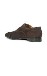 Klassiske brune ruskindssko med fem snørehuller og flotte syningens detaljer der giver de klassiske sko lidt særpræg.