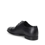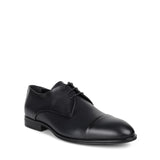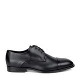 Smukke klassiske sko fra Corvari i sort glat skind med 3 snørehuller, spidsformet tå, gummisåler og tåkappe.
