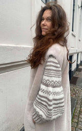 Fantastisk smuk lang vest, med inderfor af skind og yderfor af offwhite shealing. En elegant og smuk vest der både kan styles over tøj og over overtøj. Den er derfor brugbar året rundt. Vesten er vendbar og kan derfor bruges med forskellige udtryk. En tidsløs vest af ultimativt højeste kvalitet.