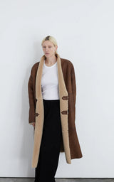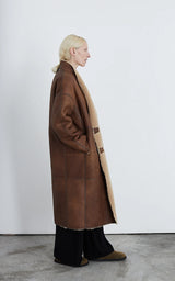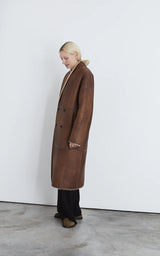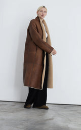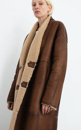 Smuk Anne Vest dobbeltradet vendbar frakke i blød spansk merino shearling med vintage inspireret overflade.