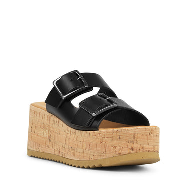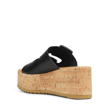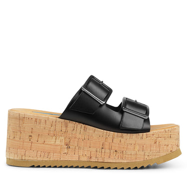 Smukke simple kork sandaler fra Apair I sort skind med to firkantet sølv spænder.