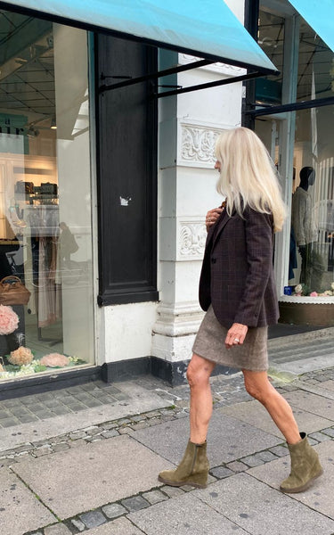 Denne ankelstøvle i en smuk mosgrøn ruskind er et sofistikeret valg til både hverdag og fest. Den spidse snude giver et feminint og elegant udtryk, mens den stabile kilehæl tilfører højde uden at gå på kompromis med komforten. Lynlåsen i siden gør støvlen let at tage af og på, og den varme grønne nuance giver et moderne twist, der passer perfekt til efterårets og vinterens garderobe.
