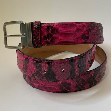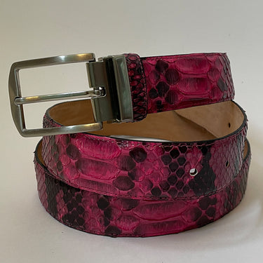 Edgy og cool bælte i pink, fremstillet af skind og ægte python. Bæltet er suverænt, hvis du ønsker at skilde dig ud fra mængden.