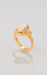 Smukkeste ring fra Stone Copenhagen lavet med barok perle og zirkon og i 24 karat forgyldt 925 sterling sølv.