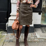 Elegant lædernederdel i blødt, smidigt lammeskind med et tidløst og sofistikeret udtryk. Den olivengrønne nuance giver et naturligt og eksklusivt look, der nemt kan styles både til hverdag og aften.