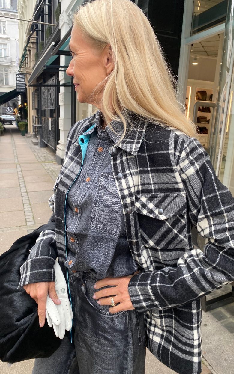 De sort-hvide tern gør jakken nem at style – både som overgangsjakke og som overshirt over en skjorte eller rullekrave.