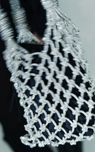 Smuk og festlig hæklet taske med rhinestone-snøre og indvendig clutch.