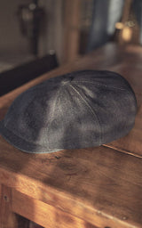 Tommy Cap er en klassisk flad kasket i et design med otte paneler med en kort syet top og en markant knaptop. Fremstillet af sprød stiv letvægtsdenim med bomuldsfor og tone-i-tone-syning. En kasket, der vil ældes smukt, når denimen forsvinder – ligesom et par jeans.