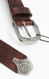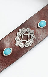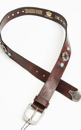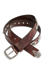 Fremstillet af fuldnarvet læder, vegetabilsk garvet og med turkise nitter i antikke sølvplader og spids. Et unikt statement bælte, der øjeblikkeligt løfter dine jeans.
