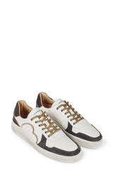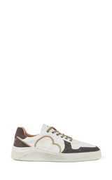 Eksklusive sneakers fra 8.beaufort i en kombination af blødt læder og ruskindstoner. Den rene hvide base får et sporty, moderne udtryk med kontrasterende detaljer. De strukturerede materialer og de subtile farvekontraster skaber en tidløs silhuet, der kombinerer afslappet luksus med gennemført designfornemmelse.