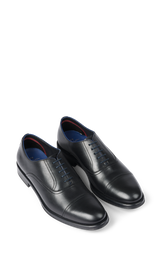 Flotte klassiske sko i sort skind fra Paul Smith. Skoene har fem snørehuller og en toecap adskildt med flotte syninger - der går igen flere steder på skoen.