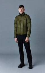 Løft din stil med Mackage Light Military Green Bomber Jacket. Designet til både mode og funktion, den har et unikt pufdesign, et subtilt logo på højre bryst, en lynlås foran og en matchende højkvalitets krave. Opgrader din garderobe i dag!