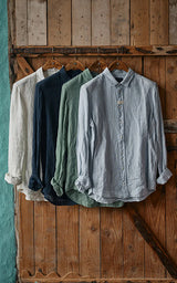 En lækker sommerskjorte lavet af et sprødt og blødt hørstof med en normal pasform med normal krave, afrundet søm, tone-i-tone-sømme og knapper lavet af Corozo-møtrik. En super let sommeressentiel.