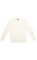 Hvid crewneck jumper - med rund hals og rullerib-kant ved hals, ærmer og talje. Fremstillet af strik bomuld/hør-blandings kvalitet - super blød på grund af bomuld og naturlige struktur i garnet på grund af hør.