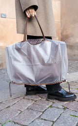 ReRAIN regnslaget beskytter både din taske og dens indhold mod regn. Vores regnslag er specielt designet til totebags, shoppere, arbejdstasker m.m. og yder optimal beskyttelse mod regnvejr, så du trygt kan være på farten, selvom det regner.