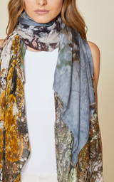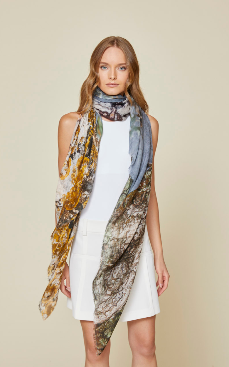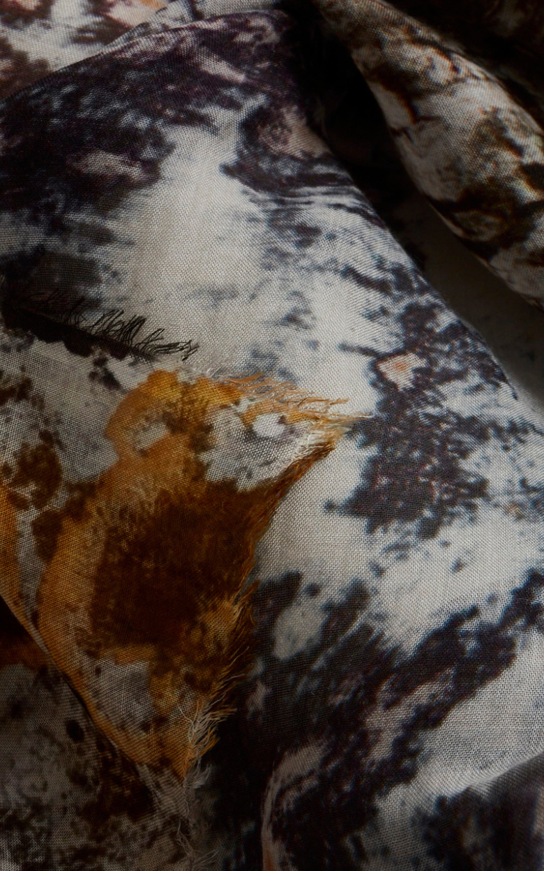 Dette tørklæde, Potpourri, er fremstillet i en eksklusiv blanding af modal og silke, der giver et let, blødt og elegant udtryk. Printet er inspireret af blomster og naturens stemninger og består af evocerende teksturer fra skove og krat, hvilket skaber et raffineret og kunstnerisk look.