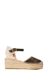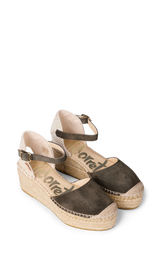 Smukke espadrilles med kilehæl i flot khaki ruskind. De har en 6 cm hæl og med en justerbar ankelrem. Håndlavet i 100% naturlige og økologiske materiale såsom jute reb, der gør det muligt for Vidorreta sko at tilpasse sig fødderne.