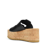 Smukke simple kork sandaler fra Apair I sort skind med to firkantet sølv spænder.