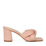 De smukkeste og sødeste lyserøde slip-in sandaler med semi-høj hæl, perfekt til de lange nætter. Skoen har en sød detalje foran, hvor læderet krydser sig og danner et sødt mønster.
