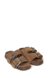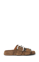 Cool chunky sandaler i brun ruskind. Sandalerne har et chunky udtryk ved deres brede såler og remme - der ligeledes har store rå sølvspænder på.