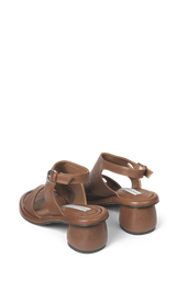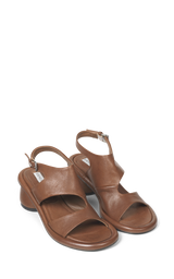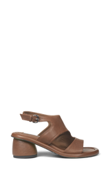 Smukke skulpturelle sandaler i brunt glat skind med en cool afrundet hæl på 6 cm.