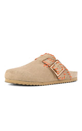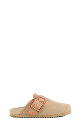 Cool slip in's i mud ruskind, lukket snude og med flotte orange kontrasksyninger.