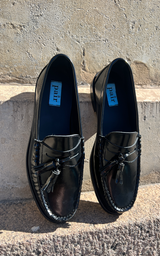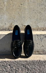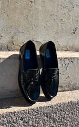 Super cool loafers i sort kalveskindslak. De har smukke syninger foran og to kvaster.