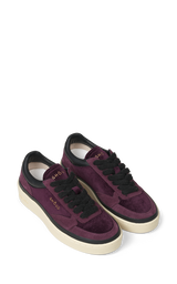 Cool sneakers fra Ghoud lavet i mørk lilla rusknd og velour og med sorte læder detaljer. De brede sorte fluffy snørebånd og de gyldne logo-detaljer fuldender designet.