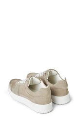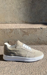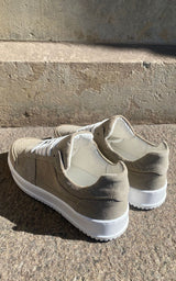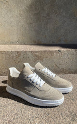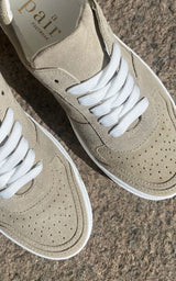 Cool sneakers i en flot greige tone ruskind. Hvide snørebånd, hvide gummisåler samt bløde læder indersåler.