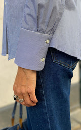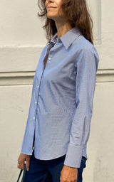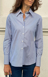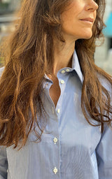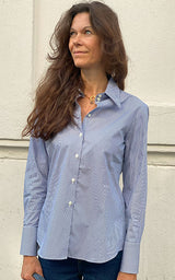 Smukkeste Brooke-J skjorte i Blue striped fra Bagutta. Skjorten har en fin markeret krave, perlemorsknapper i midten samt ved håndleddet som en fin detalje. Den smukke skjorte har et fint løst fit og er lavet i det lækreste bomuld materiale.