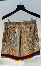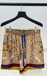 Disse fine, lette silke shorts er designet til både komfort og stil. Shortsene har elastik og en blå snørre får du en behagelig pasform, mens det smukke print af forskellige blomster mønstre giver et frisk og feminint udtryk. Kontraststriberne i bunden tilføjer et ekstra touch af elegance. Fremstillet i 100% silke, som giver en luksuriøs og let fornemmelse på huden.