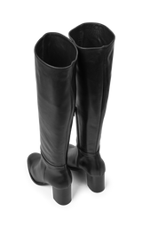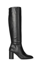Black High Heel Boot er en elegant langskaftet støvle i glat sort kalveskind. Med sit minimalistiske design og sofistikerede finish er den en tidløs klassiker, der løfter enhver garderobe. Den elegante blokhæl på ca. 7 cm giver både komfort og højde, hvilket gør støvlen velegnet til både hverdag og festlige lejligheder.