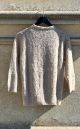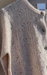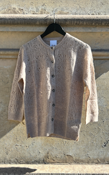 Tynd og let cashmere/silke cardigan fra Allude i sand farve med det smukkeste mønster i strikken og 3/4 ærmer.