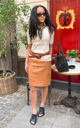 Smuk pencil-nederdel i flot vakset caramel farvet skind. Perfekt til at skabe et klassisk, men rårt look.