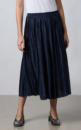 Den midilange nederdel skaber et spil mellem lys og skygge ved hver bevægelse takket være de fine plisseringer. Et enkelt men iøjnefaldende design med intense farvetoner – perfekt til sommeraftener kombineret med cropped toppe, basis t-shirts eller lette cardigans.