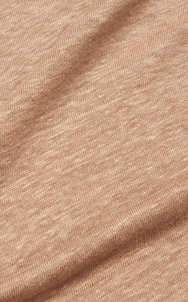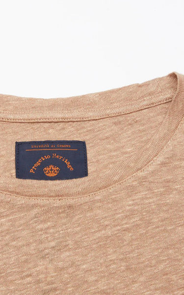En klassisk taupe T-shirt i regular fit. Den har rå kantdetaljer ved halsen, sydetaljer ved skuldre og ærmer og et lille nittebroderi forneden.