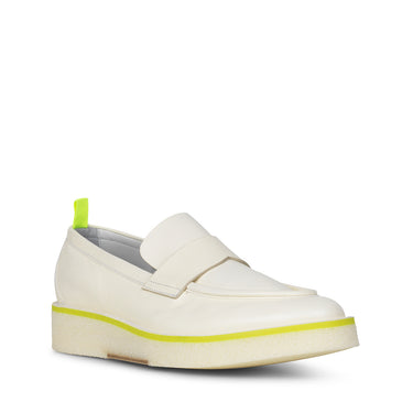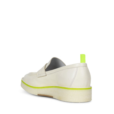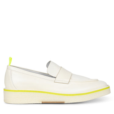 Fede mokasiner fra Barracuda i ultra-blød hvid kalveskind med hævet syning, pyntet med moderne lys-i-mørket effekt. Ultra lette Porox sål.