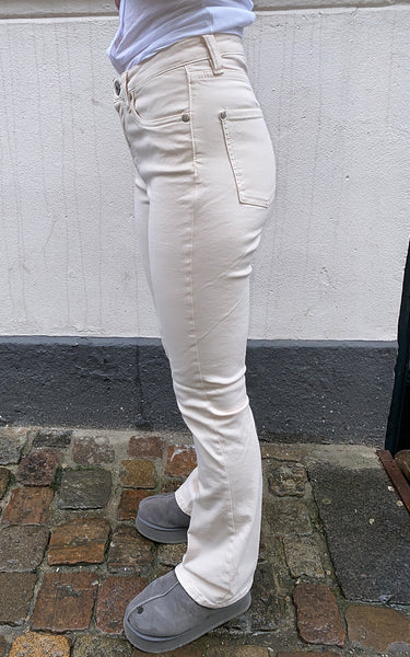 Disse nye bukser er lavet i en enkel og elegant lys beige farve, hvilket gør dem perfekte til enhver lejlighed og outfit.