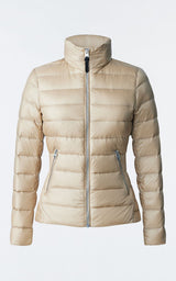 DAVINA er en recycled E3-Lite dunjakke med med en kontrast dynepeplum. Ubesværet parret, kan den figursyede silhuet prale af at have en perleformet skal og skræddersyet panel. Med den karakteristiske ultralette isolering er den toppet med en tragtkrave, der afslører en skjult hætte for beskyttende alsidighed.