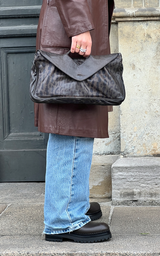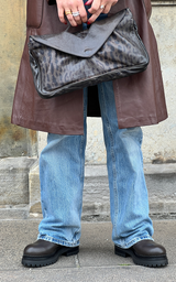 Super cool lille taske fra italienske Numero10. Numero10 er kendt for deres håndværk og kvalitets materialer der holder livstid. Tasken er lavet i blødt kalveskind og basisfarven er vasket sort hvorpå taksens forside har et cool leopard mønster i skindet. Tasken kan bruges både som håndtaske og crossbody.