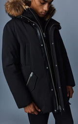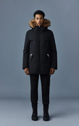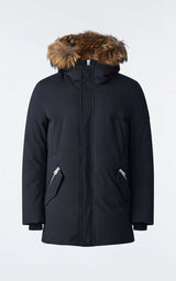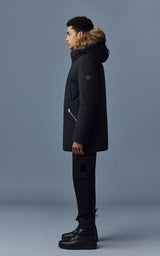 EDWARD er en Nordic Tech genbrugsdunparka med aftagelig hættesmæk og naturlig pelskrave. Konstrueret til varme i de koldeste temperaturer, den er vindtæt, vandafvisende og åndbar. Stormslåningen, den skjulte træksnor i taljen og de isolerede lommer giver ekstra ydeevne. Taljelommer med to indgange og paspolerede brystlommer tilføjer multifunktion. Kontrasterede læderdetaljer og et ærmelogo-mærke fuldender looket. En klar vinteressentiel i tidsløst design.
