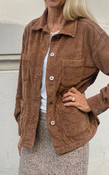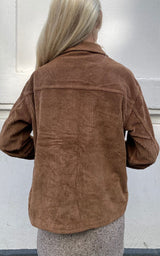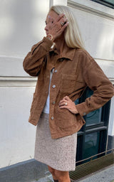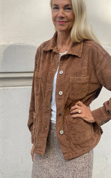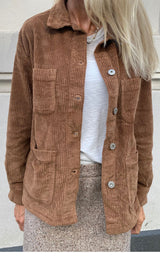 Super cool fløjls jakke fra franske Denim Studio. Den er lidt oversized i looket og er detaljeret med åbne lommer samt knaplukning. Jakken har den flotteste efterårs brune farve.