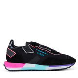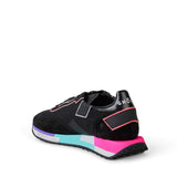 GHOUD er en af de dygtigste brands til at skabe fede og unikke sneakers, og denne sorte sneaker med farvefuld sål er endnu en must-have fra deres kollektion. Med en kombination af pink, blå, lilla og grå sål, og et omrids på skoen i samme farver, gør det skoen til en skønhed.
