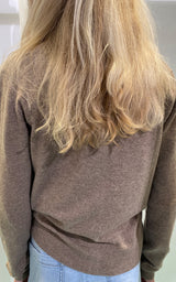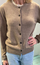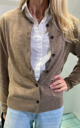 Vi præsenterer en ny cardigan lavet af 100% cashmere i en smuk mørkebrun/sand farve. Med seks knapper nede i midten til lukning er denne cardigan lavet med den højeste kvalitet, der giver et luksuriøst touch og komfort.