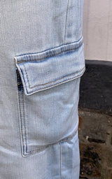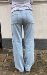 Disse bukser er cool med retro lommer på forsiden af benene. De er lavet i en lyseblå denim nuance og udstråler et tidløst retro look.
