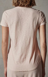 Denne Nougat t-shirt er lavet i 100% bomuldsslub. Stylen er tilpasset kroppen med en bundet rund halsudskæring og en buet bundkant. Beklædningsgenstand farvet i ekstra blødgøringsmidler for en blød fornemmelse.