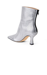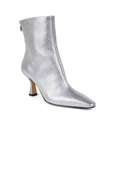 Warning - These boots will make you shine. We love these silver pointy boots from Apair in a faux snake print. Perfect for adding a little sparkle to any outfit. The boots are designed with a zip in the back and a 6 cm heel.