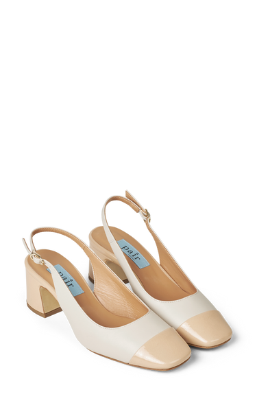 Finest pumps with 5 cm heel and slingback strap. Beautiful bright contrasting colors in leather and patent leather on the toe.